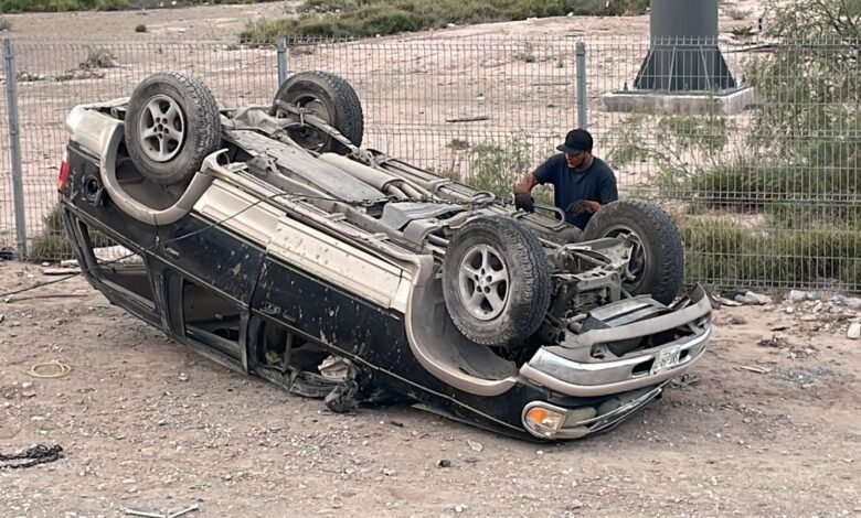 El exceso de velocidad con que circulaba, ocasionó que un vehículo volcara en la carretera Saltillo-Monclova y los pasajeros lo dejaran abandonado.