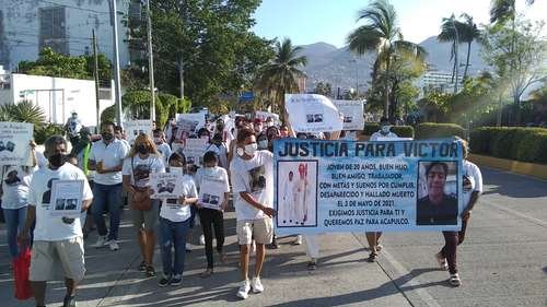 Acapulco, Gro., Familiares y amigos de Víctor Eduardo Salazar Pelagio marcharon la mañana de este domingo por la avenida Costera Miguel Alemán, desde el parque Papagayo al zócalo de Acapulco, para exigir castigo a los responsables de su secuestro y asesinato.