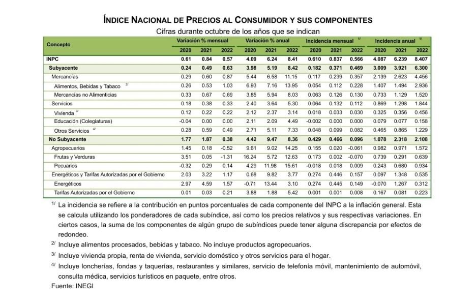 De acuerdo con el informe del Instituto Nacional de Estadística y Geografía (Inegi) publicado que el Índice Nacional de Precios al Consumidor (INPC) desaceleró y registró una variación anual de 8.41% en octubre.
