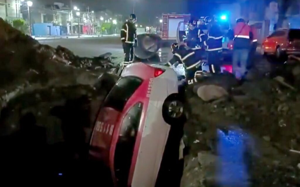 El conductor del taxi, un hombre de 43 años, relató a medios locales que no se percató de la excavación destinada a la instalación de una tubería de drenaje, lo que provocó que su vehículo cayera en la zanja.