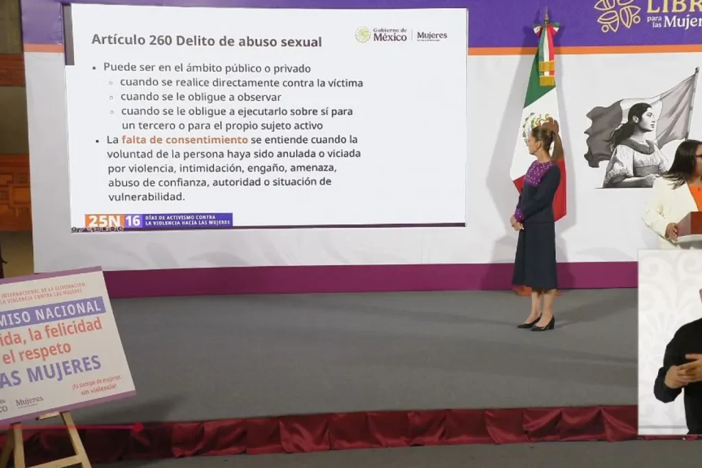 Por su parte, Citlali Hernández Mora, secretaria de las Mujeres, señaló que este martes inician 16 días de activismo y presentó los primeros avances del Plan Integral contra el Abuso Sexual. Destacó los programas en marcha para apoyar a las mujeres, como la Pensión Mujeres Bienestar, el apoyo a Madres Trabajadoras y los Centros Libres 678 en todo el país.