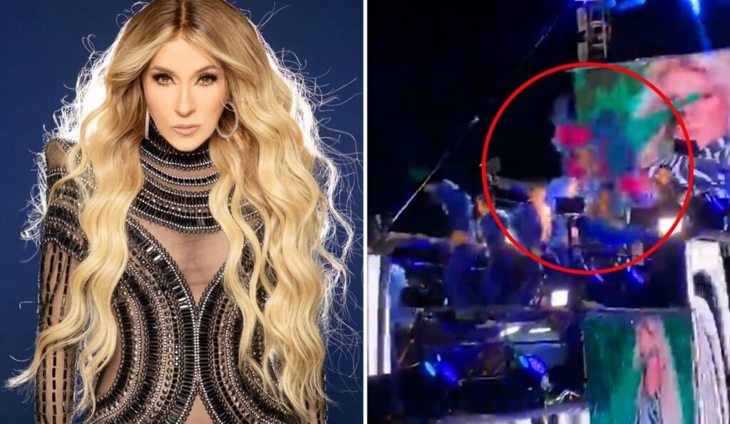 En videos que circulan en redes sociales, se puede ver el instante en que la intérprete de «Maldita primavera», luciendo un traje colorido acorde a la ocasión, bailaba sobre un carro alegórico de tres niveles y repentinamente cayó de sentón en el primer piso del vehículo.